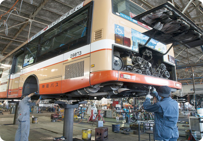 大型バスの点検・整備で培った技術と経験を強みに、乗用車から商用車まで幅広い車両の整備・メンテナンスに対応しています。部品・消耗品の供給体制も整え、販売から廃車まで一貫してサポート。確かな技術ときめ細やかな対応で、お客様の安全で快適なカーライフを支えています。